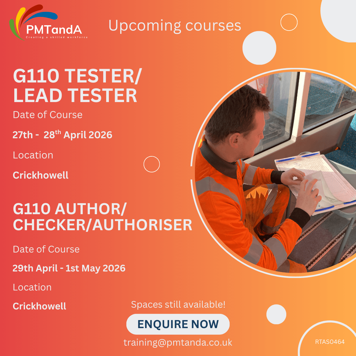 Weβre excited to announce that weβre running a G110 Competence Assessment Course at our training venue in Crickhowell on 27β28 April 2026 for Tester/Lead Tester and 29 April -1 May 2026 for Author/Checker/Authoriser π